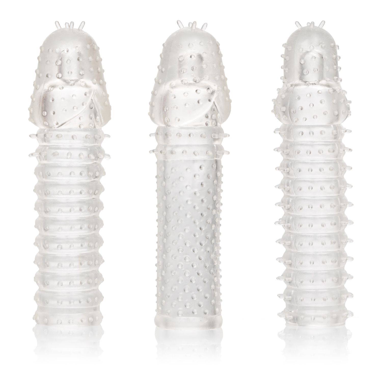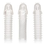3 Piece Extension Kit is a set of 3 super tight, close end extension sleeves with a ribbed texture inside and out for intense stimulation. These enlarging enhancer sleeves wrap tight to increase girth, length and explosive pleasure for everyone involved. The erotic enhancer sleeve is ultra stretchy material and spacious chamber is made to fit even the biggest man. While you thrill your lover with increased girth and stimulating ticklers, the fulfilling enhancers powerful erection support and textured chamber result in explosive results for both of you. The textured chamber and erection enhancer provide increase stimulation and powerful support. Wrap your pleasure tool in this super stretchy sleeve to easily increase stamina, stimulation and orgasmic pleasure. The flexible enhancer is made from a hygienically superior Thermoplastic Rubber TPR. This body safe material is unscented and phthalate free to keep your most sensitive spots happy and healthy. 1 year warranty. Measurements 6 inches by 1.5 inches sleeves. Weightbulk 5.2 ounces. Package 8.5 ounces. Package 2 inches by 6.75 inches by 11.25 inches. Categories: Love Rings, Men’s Cock and Ball Gear, Penis Sleeves, French Ticklers, Cock Ring Trios. 2023.