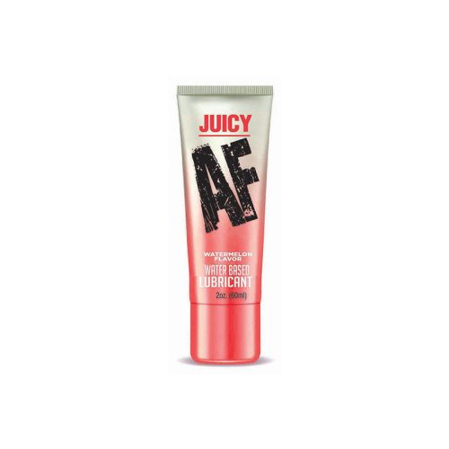 Juicy AF Lube Watermelon 2 ounces from Little Genie. Natural water based lubricant. Ingredients: water, propanediol, hydoxyethylcellulose, sodium benzoate, potassium sorbate, citric acid. Latex condom compatible. Warning: do not use if the safety seal is broken or missing. Do not use if you have a known hypersensitivity allergy to any listed ingredients. If irritation occurs discontinue use immediately. Avoid contact with eyes. Keep out of reach of children and pets. This product is not a contraceptive or spermicide. Made in the USA!