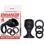 The Nasstoys Enhancer 4 In One Rock Hard Kit is your ultimate solution for bigger, harder, and longer-lasting erections! This versatile kit is designed to elevate your performance and enhance your pleasure. Made from body-safe silicone, it includes a ribbed penis sleeve with an attached cock ring for enhanced stimulation and better erections. Additionally, the kit features three different-sized cock rings, allowing you to find the perfect fit for your needs and desires. Each component works together to help you achieve more powerful ejaculations and heightened sensations, making every moment even more satisfying. For the best experience, apply a water-based lube to ensure comfort and enhance the sensations. Keeping your kit in prime condition is easysimply clean each piece before and after use with mild soap or a toy cleaner. Whether youre looking to boost your performance or explore new levels of pleasure, the Nasstoys Enhancer 4 In One Rock Hard Kit has everything you need to make your intimate moments more exciting and enjoyable.