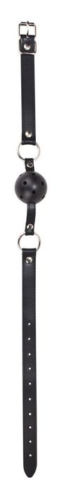 Ouch Gag Ball Black You love a naughty game? Keep you lover quiet with this distinctivebreath ball gag. This gag has quality leather straps with elegant stitching down the length of the straps. The strap has 10 holes to adjust the length. One size fits all. Use this toy on its own, or in combination with other products of Ouch! Materials Leather, ABS plastic. One size fits most. Adjustable by 10 holes.