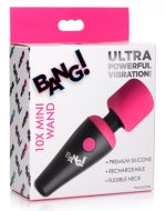 Bang! 10X Vibrating Mini Wand Pink from XR Brands. The perfect travel companion! This tiny wand fits in the palm of your hand but delivers a powerful punch! Wherever you go, slip it into a travel bag, a purse, a large pocket, or tuck it away in your drawer at home! Now you can enjoy your favorite wand vibe without taking up as much space! This premium silicone vibrating wand has a flexible neck for pressing the vibrating head into any area that feels pleasurable to relieve your tension at any time. Choose between 3 speeds and 7 patterns of vibration until you find the perfect setting. After use, simply wash with warm water and soap, and spray with a toy cleaner. Use only with a water based lubricant. Measurements: overall length 4.3 inches, massage head diameter 1.2 inches. Materials Silicone, ABS plastic. Color Pink. Key features: travel friendly wand: this mini wand can fit in the palm of your hand making discreet travel with your favorite vibe easy! Flexible neck: the neck bends enough so that the vibrating head and be pressed or moved into the angle that feels best for you. Powerful vibrations. Choose between 3 speeds and 7 patterns of vibration. Rechargeable massager and body safe materials. Made of premium grade silicone, this toy is USB rechargeable. Simply insert the jack pin into the dimple at the base of the charger and connect to a USB port. Categories: Rechargeable Vibrators, Magic Wands, Body Massagers, Palm Size Massagers, Sex Toys for Women. Video. 2023.