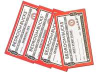 Bedroom Bucks 30 Coupon Book from Ball and Chain. I.O.U. For all acts naughty and private. Sample coupons: Good for morning sex. Memo Good morning sunshine. Good for Erotic massage with a happy ending. Sex strip tease. Take it all off. Categories: Party Games, Gifts, Supplies, X-Rated Adult Games, Books, Adult Games, Music, Adult Party Games. 2024.