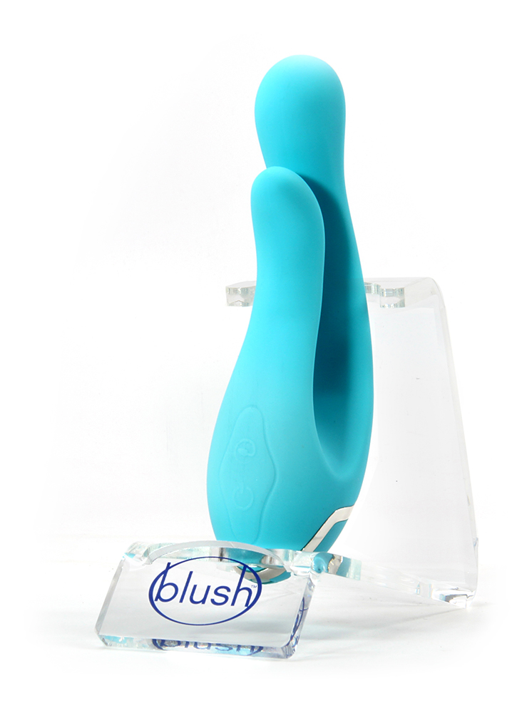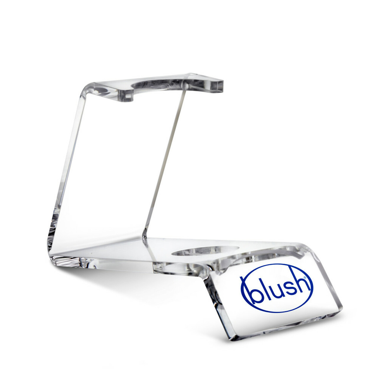 Blush Novelties Acrylic Tester Display is shown with Arielle, Splash and Scarlet G. Not included. Sold separately. Catalogs, Sales Tools and Promotional Items, Collection: Signs, Merchandising Support. Restricted, Amazon Restricted. 2024.