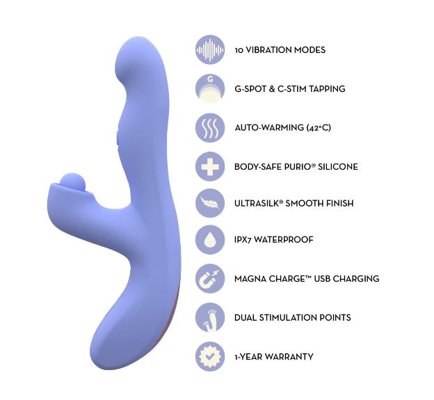 Meet Simone, your passionate companion for intimate exploration. Powered by Blushs RumboTech, this beautifully designed, dual-stim rabbit vibe combines 10 vibration modes with G-Spot and C-Stim tapping functions to deliver targeted sensations exactly where you crave them. Designed with a flexible shaft and sculpted external stimulator, Simone invites you to discover new heights of pleasure with effortless precision and passion. The auto-warming feature adds a layer of sensual heat, enhancing intimacy and heightening anticipation with every pulse. Crafted from 100% body-safe Puria silicone and wrapped in satin-smooth UltraSilk, Simone feels irresistibly soft and luxurious against your skin. With an IPX7 waterproof design, indulge in Simones pleasures during a relaxing bath or shower. Magna Charge USB charging ensures its always ready when you are. Bold yet intuitive, Simone is perfect for solo or partnered play, making every encounter unforgettable. Set your pace and get ready to lose control.10 Deep & Powerful RumboTech Vibration ModesG-Spot & C-Stim Tapping For Targeted SensationAuto Warming Feature For Enhanced IntimacyPuria Soft Silicone, UltraSilk Satin SmoothIPX7 Waterproof + Magna Charge USB Charging