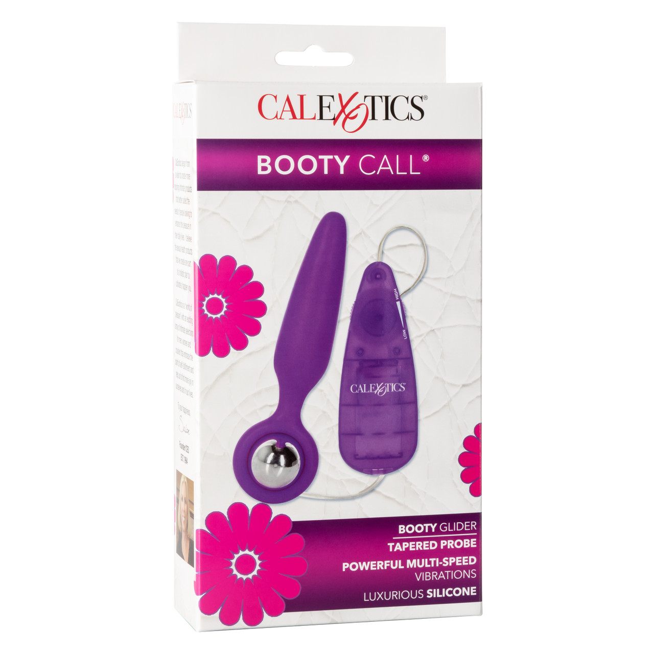 Booty Call Booty Glider Tapered Probe Purple. Double up the fun with the Booty Call Booty Glider. The dual purpose probe features a smooth head as well as an intimate massage function to give you twice the stimulation and so much versatility. Bringing together the best of both worlds, the stimulator can give you the pleasure of a curved probe while offering a choice of powerful multi-speed vibrations so you can turn things up a notch in the bedroom. Made with premium body safe Silicone, the Glider can be used anywhere and is essentially two toys in one: the sleek Silicone Probe and the Vibrating Bullet can be used together or individually. This waterproof toy allows for intimate moments in the shower or bath and features a handy ring for full control and manipulation. Take your intimacy to new heights as you experiment with tantalizing vibrations and experiment with arousing your most pleasurable areas. Premium Silicone Probes with removable stimulator. Powerful multiple speed vibrations. Stimulator and probe may be used together or separately. Easy to use controller. Safe and pure for body and pleasure made using Silicone Probe, Polyurethane PP Power Controller, ABS Plastic with Silver Plating Stimulator. Vibrating sex toy requires 2 AAA batteries, not included. For Women, For Men, Anal Toys, Anal Toys, Probe, Probes. Booty Call Booty Glider is registered trademark for California Exotic Novelties. Colors may vary. 1 year warranty. Categories for the Booty Glider: Anal Toys, G-Spot Vibrators, Small and Medium Butt Plugs, Vibrators, Sex Toys for Women. 2023.
