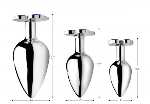 Booty Sparks Violet Flower Gem Anal Plug Set from XR Brands. Who does not love flowers for a special occasion? The difference with this bouquet is that these violets will never wilt! Three different plug sizes allow you to take anal play at your own pace, or choose based on what you are in the mood for! Pop in each sleek plug to appreciate the comfortable weight inside your body, thanks to the nickel free aluminum alloy material. Great for temperature play, you can warm or cool them in water before insertion. The attractive charm at the base will be a surprise for your partner when you bend over. Use with any lubricant of your choosing and clean after use with mild soap or toy cleaner. Measurements: small butt plug is 2.6 inches in total length, 2.4 inches insertion length, 1 inch at widest diameter, .4 inch in diameter at stem. Medium butt plug is 3.2 inches in total length, 3 inches insertion length, 1.3 inches at widest diameter, .45 inch in diameter at stem. Large butt plug is 3.8 inches in total length, 3.4 inches insertion length, 1.6 inches at widest diameter, .48 inch in diameter at stem. Materials: Aluminum Alloy Butt Plugs, ABS Plastic Flower Ends. Color Purple. Note includes 3 different size plugs. Categories: Anal Toys, Sex Toys for Couples, Sensual Kits, Anal Trainer Kits. 2023.