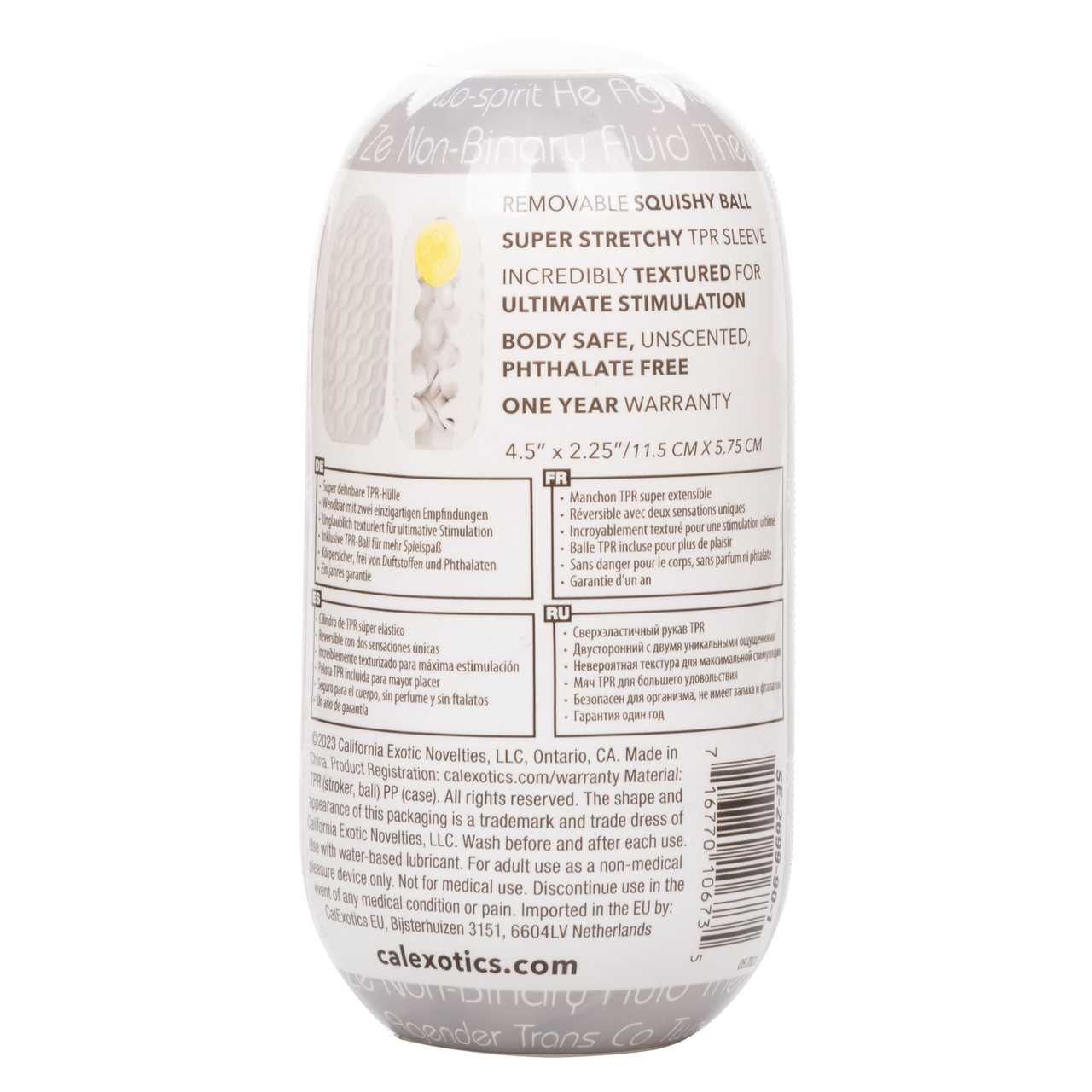 Boundless Squishy Ball Stroker Yellow from California Exotic Novelties. Introducing the Boundless Reversible Squishy Ball Stroker, a premium Stroker designed to provide unmatched pleasure and customizable sensations. This versatile Stroker features a tip tickler and comes with a convenient storage case for discreet and hygienic storage. With its soft, tight, and stretchy design, the stroker offers a life like and satisfying experience. The removable Squishy Ball allows you to personalize the level of tightness and stimulation to suit your preferences, providing truly tailored pleasure. The stroker is also reversible, offering 2 unique textures to explore. Featuring a ribbed texture, it enhances every stroke, delivering ultimate satisfaction and heightened sensations. The closed ended design ensures superior suction, intensifying the pleasure and maximizing your enjoyment. Maintenance is a breeze with the Boundless Reversible Squishy Ball Stroker. It is hygienically superior and maintenance free. Simply wash it with warm water and mild soap for easy and convenient cleaning. Unleash your desires and experience the Boundless Reversible Squishy Ball Stroker. Whether you are indulging in solo play or inviting a partner to join in the fun, this premium Stroker ensures unforgettable and personalized pleasure that will leave you wanting more. Specifications: SKU SE-2699-90-1. Color: Clear, Yellow. 1 year warranty. Features:Phthalate free materials. Material type: Polypropylene PP stroker case, Thermoplastic Rubber TPR Stroker, Ball. Measurements: 4.5 inches by 2.25 inches. Bulk weight 6 ounces. Package 7.6 ounces. Package 2.5 inches by 2.5 inches by 5 inches. Categories: Male Masturbators, Sex Toys for Men, Solo Masturbators, Masturbation Sleeves. 2023.