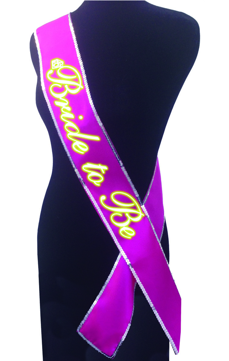 Bride To Be Sash Glow In The Dark from Little Genie. An illuminatingly sexy addition to any Bride To Be wardrobe! You will definitely be the center of attention with this 6 feet long adjustable Glow in the dark party sash. It is your last night of living the single life so we recommend partying like a rock star! Contents 1 6 feet hot pink glow sash, 1 safety pin. Categories: Party Games, Gifts, Supplies, Risque Party Wear, For the Bachelorette Party. 2023.