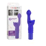 Silicone Butterfly Kiss Purple Vibrator. Discreetly shaped with your ultimate sensual pleasure in mind, the Silicone Butterfly Kiss is the perfect pocket sized combo Stimulator for intimate fun on the move. The compact vibe boasts dual power packed motors, 3 intense vibrating speeds, a contoured G-Spot Tip, and a fluttering Butterfly Clitoral Teaser. The Purple Feminine Arouser measures 2.75 inches by 1.25 inches and is made from super soft, premium Silicone, and has an ABS Plastic Cap. The hand held personal Massager has a solid Shaft with Butterfly Shaped pleasure nodules, a bud shaped G-Spot Tip and a curvy scoop, Butterfly Clitoral Teaser. Once activated, the Butterflys Antennae will flicker into stimulating action and entice tingles and orgasmic sensations. The easy to use vibe has dual motors that power up 3 powerful ascending speeds of intimate good vibrations. To maximize the pleasurable experience, always use a quality personal lubricant with this toy. The waterproof Arouser is suitable for solo fun, or couples play in the hot tub, bath or shower, and is perfect for first time users and experienced explorers. 2 motors to intensify your experience. Sensually designed arouser with a delicately shaped G-Spot Stimulator. 3 powerful vibration speeds. Easy push button control. Sized for beginners, intermediate, and advanced users. Safe and pure for body and pleasure. Made using phthalate free, non-toxic materials: Silicone G-Spot, Butterfly Clitoral Stimulator, ABS Plastic Cap. Vibrator measures 2.75 inches long by 1.25 inches wide. Vibrating sex toy requires 2 AAA batteries, not included. Silicone Butterfly Kiss Pink Vibrator is a registered trademark for California Exotic Novelties. Sex toys and sexual wellness. Categories: Vibrators, G-Spot Vibrators, Sex Toys for Women, G-Spot, Clit Stimulators. 2023.