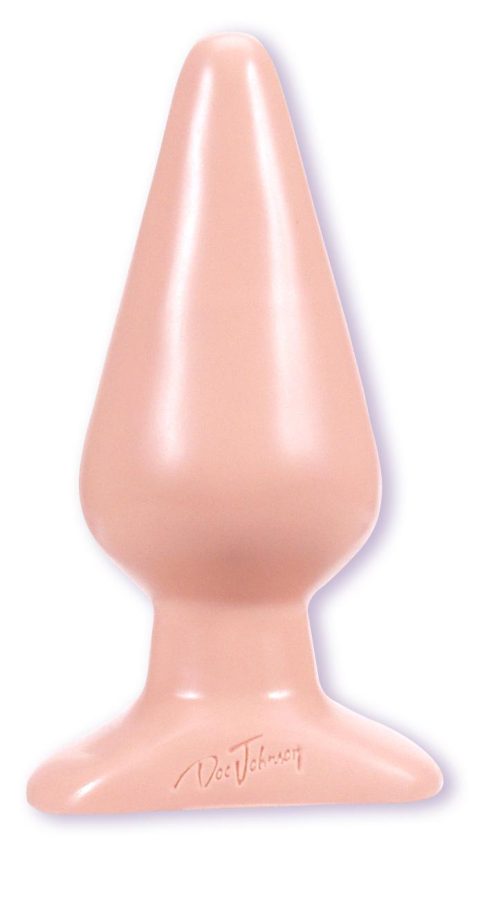 Classic Butt Plug White Beige Large from Doc Johnson Novelties. For the advanced person that likes to take things to the next level, try this large, Butt Plug on for size. Do not hesitate to take this Butt Plug sex toy for a test ride. With its slim base, tapered head and variant shaft thickness for your utmost enjoyment, this adult toy is perfectly suited for anal play. Mother Nature herself could not have dreamed up a more suitable toy for anal masturbation. The tapered shape of this butt plug sex toy makes stimulating your prostate child’s play. This Anal Plug will intensify your orgasms and make you beg for more in no time. Constructed from soft rubber, this Doc Johnson Anal Butt Plug will drive you wild with its revolutionary state of the art skin stimulating material and accentuated features. No bedtime romp could ever be complete without the pleasures of this butt plug. Latex free filled rubber. Large white rubber butt plug measures 5 inches to 6 inches long by D 2 inches to 2.5 inches wide. Made using phthalate free, non-toxic materials: Sil-A-Gel, PVC. All new Sil-A-Gel formula. Antibacterial, non-toxic formula. Latex free, Cadmium free. Odorless. Details: Butt Plug circumference is 7.25 inches around. Dimensions 5.50 inches long, 2.00 inches wide and 3.10 deep. Plug can safely be inserted 5.00 inches. Component Material PVC. Non Phthalate. Safe for Anal and Prostate massage. Categories: Anal Toys, Prostate Massagers, P-Spot Stimulators, Large, Huge Butt Plugs. Classic Butt Plugs from Doc Johnson Novelties. Made in the USA. 2024.