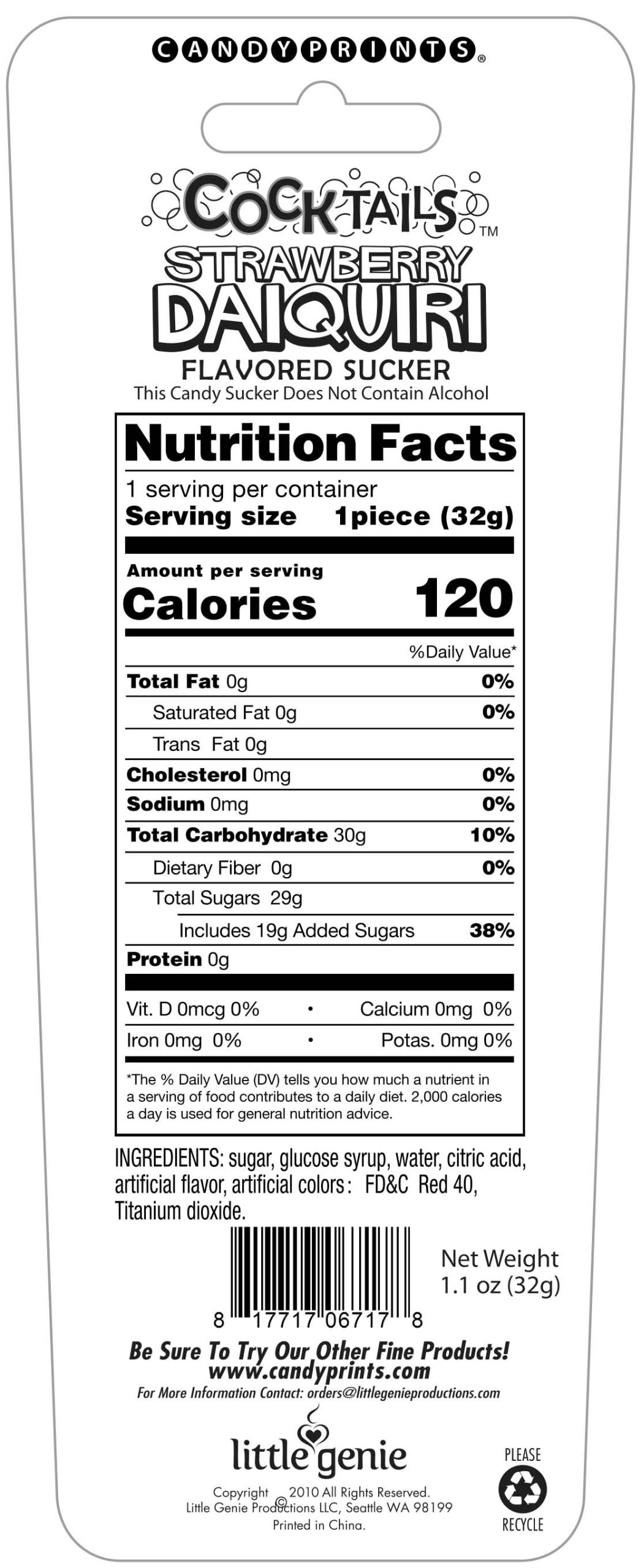 Cocktails Sucker Strawberry Daiquiri Flavored Lollipop from Candyprints. What is shaped like a penis and tastes like a mixed drink? Our new and original cocktail suckers. Best of all they come in three flavors: Margarita, Strawberry Daiquiri and Pina Colada. Cheers to that! Candyprints Cocktail suckers are delicious and exquisitely crafted candy lollipops in the shape of a penis shaft and balls. These tasty treats make great party favors at bachelorette parties, pride festivals, gender reveal parties and circumcisions. Each cocktail sucker proudly packs 1.12 ounces of sweetness and comes in seven yummy flavors. Try Pina Colada, Strawberry Daiquiri, Mojito, Chocolate Liquor, Screaming Orgasm, Horny Unicorn and the new Blue Hawaiian. Satisfy your oral fixation today with Candyprints Cocktail Suckers. Contains no Alcohol. Cocktail Sucker from Candyprints. Makers of fine risque candy and risque party goods. Candyprints – Cocktails. Categories: Party Games, Gifts & Supplies, Adult Candy and Erotic Foods, Lollipops. 2023.