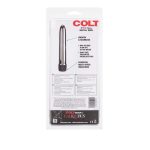 Colt Metal 7.5 inches Silver Vibrator from California Exotic Novelties. Colt Gear inspired by the number one gay adult film industry. Sleek, sexy and silver, that is the Colt Metal 7.5 inches. This power packed vibe with a smooth, seamless finish offers multi-speed options for the ultimate in pulsation, vibration, and escalation. Styled in sexy ABS Plastic with silver plating, this adult toy is both body safe and super satisfying. Get gratified in style with this vibrator. Pure enjoyment awaits whether you are indulging in hot partner play or a sensual solo session. It is a welcomed addition to your sex toy collection. For the sexiest satiation around, you can not beat the smooth silver shape of this power packed vibrator. This powerful, gratifying vibe has exactly what you need to get just what you want. The bold styling looks as good as it feels. So what are you waiting for? Add a new dimension to your fun and games in bed with the Colt Metal. It looks cool, but it is hot, hot, hot! Colt Metal 7.5 inches ABS Plastic with silver plating. Power packed multiple speed waterproof vibrators with a smooth seamless finish. Vibrating sex toy requires 2 C batteries not included. Do not leave batteries in the vibrator between uses. Safe and pure for body and pleasure. Made using phthalate free, non-toxic materials ABS Plastic with Silver Plating, ABS Plastic cap. A water based lubricant is recommended. Vibrator measures 6.75 inches long by 1.1 inches wide. Weighs 3.4 ounces. Vibrator can safely be used to stimulate the Prostate, Male G-Spot or P-Spot. Always clean before and after use. 1 year warranty. Colt Metal 7.5 inches Vibrator is a registered trademark for California Exotic Novelties. Sex toys and sexual wellness. Categories: Prostate Massagers, P-Spot Stimulators, Probes, Sticks, Rods, Vibrators, Classic Vibrators. 2024.
