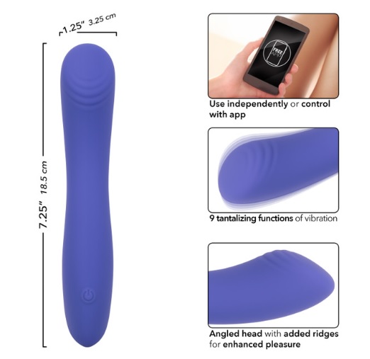 Step into a world where technology meets sensual satisfaction with the CalExotics Connect Contoured “G”. This device is a marvel of modern pleasure, designed for those who appreciate precision and versatility in their intimate experiences. Whether used independently or controlled via the user-friendly, easy-to-download app, the Contoured “G” offers innovative features that allow for seamless and creative play, enabling you and your partner to explore from near or afar.The massager’s contoured design, featuring an angled head and added ridges, is expertly crafted to enhance pleasure with every use. This unique shape is ideal for targeted stimulation, ensuring that your most sensitive areas receive the attention they deserve. The 9 functions of vibration, pulsation, and escalation provide a diverse range of sensations, allowing you to explore a variety of intensities and rhythms. Whether you’re seeking a gentle touch or a powerful wave of vibration, it adapts to your desires, delivering personalized ecstasy at your fingertips.Crafted from body-safe Silicone, the stimulator is ideal for full-body pleasure. Being 100% waterproof with an IPX7 rating, it invites exploration in a variety of settings, allowing you to indulge in your fantasies wherever and whenever you desire. The state-of-the-art memory chip is a subtle yet impactful addition, ensuring that the device resumes on the last function used, offering personalized pleasure possibilities.Prioritizing both convenience and privacy, it features a security travel lock, activated by holding the button for three seconds. USB rechargeable and complete with a charging cord, it offers a full charge in just 2 hours. Once powered, enjoy 40 minutes of high-intensity pleasure or extend your experience with 60 minutes on a lower setting. The CalExotics Connect Contoured ‘G’ takes you on a journey of self-discovery, serving as a graceful and intuitive companion dedicated to elevating your private moments.