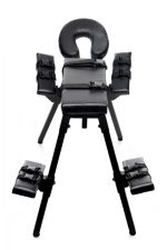 Master Series Obedience Extreme Sex Bench with Restraint Straps from XR Brands. Act out dark fantasies or prepare for intense impact play scenes when you strap your lover into the Obedience Extreme Sex Bench! This heavy duty piece of sex furniture is made of sturdy steel, with comfortable padding for the body, legs, arms, and head of your partner so that you can play vigorously for hours. Keep your sub helpless and at your mercy! This ergonomically shaped bench will leave them exposed for spankings, penetration, or both. You will even be able to go deeper than ever before! The U-shaped headrest will not muffle their moans and squeals as you play. Play without the straps, or keep them fully restrained. The quick release buckles are easy to use. Adjust the height of the arms and legs, or remove the head support to fully customize the experience. Measurements: 27 inches in height, 50 inches in width. Torso pad is 18.5 inches in length, 8.5 inches in width. Arm and ankle pads are 12 inches in length, 4 inches in width. Material: Polyurethane PU Coat Leather, Steel, Nylon. Color Black. Note supports up to 400 pounds. Categories: Bondage, Fetish, Kink, Sex Swings, Machines, Erotic Furniture, Bondage Restraints. Video. 2023.