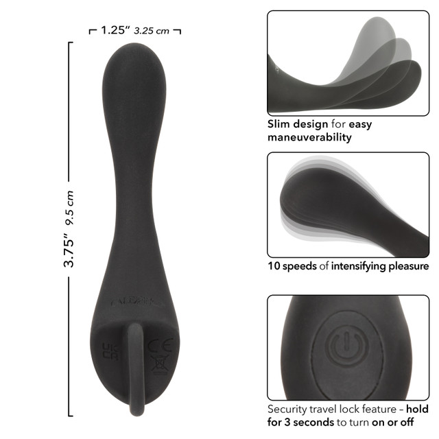Embark on an unforgettable journey of pleasure with the Dr. Joel Kaplan Rechargeable Prostate Locator, expertly designed to hit just the right spot. This slim, sleek probe is tailored for those seeking precise stimulation, featuring an easy retrieval ring for enhanced control during play. Whether you’re exploring solo or with a partner, this vibrator offers a seamless and comfortable experience.Equipped with 10 incremental speeds of vibration, the Prostate Locator allows you to escalate your pleasure at your own pace. Each setting is crafted to provide intense, focused stimulation that can be adjusted to match the rhythm of your desire. Made from body-safe Silicone, this probe is not only smooth to the touch but also 100% waterproof with an IPX7 rating, making it perfect for adventurous play in any setting.The Dr. Joel Kaplan Prostate Locator is as convenient as it is thrilling. With a security travel lock for peace of mind and a state-of-the-art memory chip that resumes on the last speed used, it allows for a personalized experience every time. Its USB rechargeable, and a complete charge takes only 1.5 hours, offering 50 minutes of play on high speed and 60 minutes on low. Dive deep into your exploration and let this probe guide you to new heights of ecstasy.