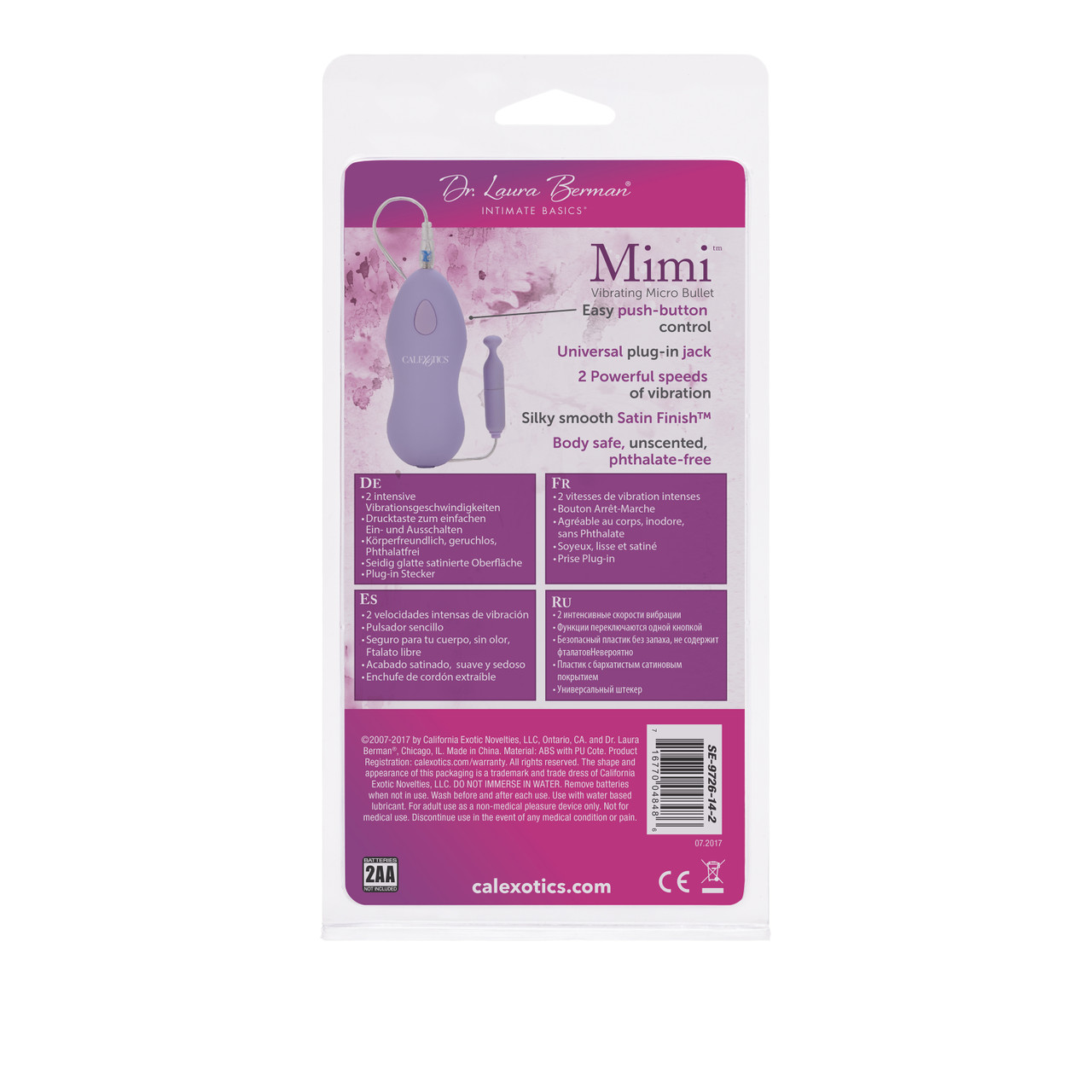 Dr. Laura Berman Intimate Basics Mimi Vibrating Bullet from California Exotic Novelties. Explore your intimate desires with the discreet Dr. Laura Berman Intimate Basics Mimi Vibrating Micro Bullet. The petite vibrating bullet stimulator is perfectly sized to slip into your purse for ultimate self gratification on the move. The whisper quiet erotic arouser measures 2.25 inches by .5 inch. Mimi Bullet Vibrator is made from smooth ABS Plastic with a soft Rubber Cote. The curvaceous contoured Bullet Vibrator is attached by cord to a hand held controller and is designed for precision arousal and intensified stimulation. Use the bullet vibe for exploring tantalizing erogenous zones all over the body. The 2 speed Dr. Laura Berman Intimate Basics Mimi Vibrating Micro Bullet is suitable for first time and experienced users, and makes a great addition to an intimate toy collection. The Dr. Laura Berman Intimate Basics Collection is designed by women, for women to give you and your partner exactly what you need: color, ergonomic designs, discreet packaging, superior quality, quiet and powerful devices. Dr. Laura Berman Intimate Basics Mimi Vibrating Micro Bullet is powerful 2 speed, Rubber Cote micro sized Bullet Vibrator is designed for pinpoint stimulation. Easy grip battery case with plug in jack and push button control. Safe and pure for body and pleasure. Made using phthalate free, non-toxic materials ABS Plastic with Rubber Cote Polyurethane PU Cote. ABS is Hard Plastic, non-porous, durable and easy to clean and maintain. All types of personal lubricants may be used with Hard Plastics but be sure to clean well around seals. ABS products are safe, pure plus phthalate free. Mini Bullet measures 2.25 inches long by .5 inch wide. Vibrating Bullet requires 2 AA batteries not included. Do not leave batteries in the Vibrator between uses. Laura Berman, LCSW, PhD has been working as a sex educator and therapist for +30 years, and is considered a leader in her field. Her latest book, Real Sex for Real Women is an international Best Seller. Dr. Laura Berman Intimate Basics Mini is a registered trademark for California Exotic Novelties. Sex toys and sexual wellness. Dr. Laura Berman Intimate Basics Lila is a registered trademark for California Exotic Novelties. Sex toys and sexual wellness. Categories: Vibrators, Bullets, Eggs, Vibrating Bullets and Eggs, As Seen on Oprah, Health and Beauty Aids. 2023.