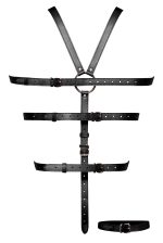 Ellona Tie Me Up 1 Piece Harness Set Black O/S from Male Power Fetish Line. From the women’s Leather collection, this style includes a full torso restraint Harness with adjustable buckled back straps and adjustable T-Back with metal rings and studs. Fabric: Soft Nubuck Leather with Polyurethane PU coating, heavy metal rings, buckles, and studding. Polyurethane PU coated Split Leather. Do not wash, Do not Bleach. Do not Tumble dry. Categories: Lingerie, Clothing, Bondage, Fetish, Kink, Naughty Role Play, Bondage Restraints, Body Harnesses. 2023.