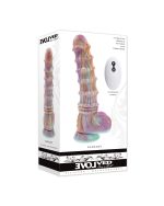 Discover deep cosmic vibes with this big, girthy flexible toy that gives a whole new meaning to ‘creature comforts.’ Crafted with unusually textured, multicolor body-safe silicone, this fantasy-inspired vibrator has 8 graduated rings on its shaft, textured balls and a powerful suction cup base for out of this world hands-free pleasure. Try Turbo Mode to really send your orgasm into the stratosphere!Specs:8 vibrating speeds & patterns + Turbo ModeInsertable length 8″, insertable diameter 2.47″Made from phthalate & latex free liquid siliconeUSB magnetic rechargeable, cable includedHeight: 10.88″, Depth: 4″, Width: 3.13″Remote dimensions: Height: 2.84″, Depth: 1″, Width: 1.69″Remote range: 20’Remote uses 1 x AAA battery (not included)Waterproof