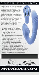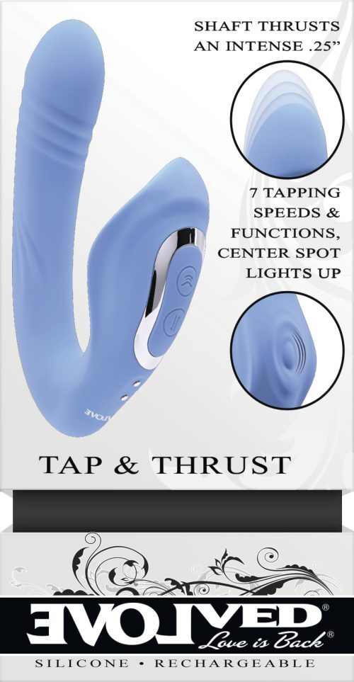 Evolved Tap and Thrust Dual Vibrator. Evolved Love Is Back. Embrace the curve! This delicious dual vibe buzzes and thrusts for internal bliss while tapping for external joy. Two sensations joined with a flexible bend! Made from creamy, smooth Silicone, a gently curved main shaft ends with a swelled textured head that vibrates and stretches for an erotic life like feel while the tapping shaft treats your external erogenous zones to a lit up pulsing beat that just will not quit! Both powerful motors feature 7 speeds and functions to wow your body, even underwater as vibrator is completely waterproof. Submersible for bath tub play. Size 6.7 inches in length, 5.5 inches insertion length. Rechargeable vibrations. Easy to clean. 5 years warranty. Categories: Sex Toys for Couples, Rechargeable Vibrators, Strap-Ons, Harnesses, Double Dongs. 2023.