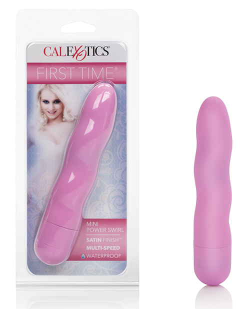 First Time Mini Power Swirl Pink Vibrator Pleasure Toys Hard Vibrator from California Exotic Novelties. First Time Velvety Soft Pleasure Products Designed for First Time or Experienced Users. Make it a memorable experience with the First Time Collection. Super elegant and feminine, the First Time Mini Power Swirl is a stylish, intimate stimulator for ultimate personal pleasure. The unusual curvaceously contoured vibe has a velvety smooth finish. The vibes alluring and delicate wavy swirl shape are designed to heighten your sensual experience, whether you are a curious first time explorer or experienced adventurer. The compact massager is waterproof and easy to use. The funky power packed stimulator measures 4.5 inches by 1 inch and features a contoured solid shaft and smooth rounded tip, for maximum tingles. To control the intensity of the power simply twist the end cap to your desired speed setting. Start off slow, and gradually increase the pleasure ripples until you reach climax zone. The vibe can be used in the bath or shower, for additional fun. A single AA battery powers up the discreet teaser. The compact sized stimulator is perfectly proportioned to slip into your purse for erotic adventures wherever you go. Use with a quality lubricant to enhance each arousing encounter. To clean the vibe, spray with toy cleaner or wash in warm, soapy water. This velvety soft, power packed, curvy vibrator is the perfect pleasure companion. Velvety soft, power packed, sensually swirled, and easy to use. Multiple speed vibrations. Waterproof vibrations for play outside the bedroom. Safe and pure for body and pleasure. Made using phthalate free, non-toxic materials ABS Plastic with Polyurethane PU Cote, Vibrating sex toy requires 1 AA battery, not included. Do not leave battery in the vibrator between uses. Mini vibrator measures 4.5 inches long by 1 inch wide. Always clean before and after use. Water based personal lubricant is recommended. First Time Mini Power Swirl Vibrator is a registered trademark for California Exotic Novelties. Sex toys and sexual wellness. Categories: Pleasure Toys, Vibrators, Classic Vibrators, Firm Vibrators, Sex Toys for Women. 2023.