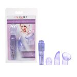 First Time Travel Teaser Kit Purple Pleasure Toys from California Exotic Novelties. Kit comes with a classic Pocket Rocket Style Massager with Interchangeable pleasure Tips. First Time velvety soft pleasure products and playful fetish gear designed for first time or experienced users. Make it a memorable experience with the First Time Collection. Discreet and powerful lighted pocket rocket massager. 3 interchangeable pleasure tips. Safe and pure for body and pleasure. Made using phthalate free, non-toxic materials: ABS Plastic with Polyurethane PU Cote Massager, Thermoplastic Elastomers TPE Attachments. Massager measures 4 inches long by 1 inch wide. Nubby attachment measures 1.25 inches long by 1.25 inches wide. G-Spot attachment measures 2.25 inches long by 1 inch wide. Scoop attachment measures 2 inches long by 1.5 inches. Vibrating sex toy requires 1 AA battery, not included. Do not leave battery in the vibrator between uses. A water based lubricant is recommended. Category: For Women, Massagers, Stimulators, Vibrators. First Time Travel Teaser Kit Purple is a registered trademark for California Exotic Novelties. Sex toys and sexual wellness. Categories: Pleasure Toys, First Time, Rocket Style Vibrators, Massage Kits, Sex Toys for Women, Travel Sex Toy Kit, Vibrator Kits. 2023.