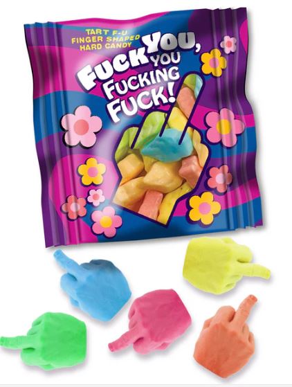 Introducing the “Fuck You, You Fucking Fuck!” Candy the sweet treat that says what everyone else is thinking! This bag of 25 mini-packs, each filled with 5 sassy middle finger candies, is your new best friend for any occasion that needs a little extra attitude. Perfect for party favors or as a cheeky surprise for those special people in your life who just need a friendly reminder of how you really feel. With a taste that’s as bold as its message, these candies will leave everyone laughing and craving more. Get ready to add a sprinkle of sass to your day grab your bag today and let the fun begin!