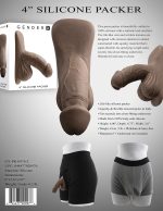 Gender X 4 inches Silicone Packer Dark Skin Tone from Evolved Novelties. Gender X 4 inches Silicone Packer Dark Skin Tone from Evolved Novelties. This penis packer is beautifully crafted in 100% Silicone with a realistic look and feel. The life like vein and wrinkle textures are designed with extreme attention to detail, constructed with squishy material that is super flexible. Its satisfying weight tucks securely into close fitting underwear. Waterproof and easy to clean. Features: life like Silicone Packer Dildo. Squishy and flexible textured penis and balls. Fits securely into close fitting underwear. Made from 100% Body Safe Silicone. Packer size height 6.00 inches, depth 4.75 inches, width 2.6 inches. Weight over half a pound. Phthalate free, latex free. Waterproof non-vibrating dildo. Package size 7.7 inches by 6 inches by 3 inches. Categories: Sex Toys for Couples, Dildos, Dongs, Sex Toys for Women, Fleshlight and Packers, Dildos, Dongs Realistic. Please note shown in a shorts, not included. 5 years warranty. 2023.
