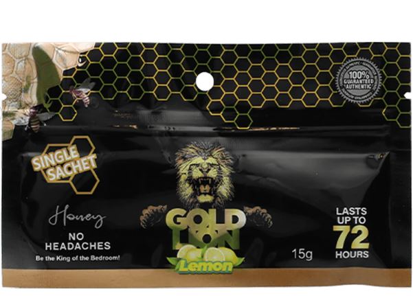 Be the king of the bedroom. Your favorite gold lion is now available in LEMONFlavor honey form. Gold Lion Honey has been scientifically designed for men toincrease sexual pleasure and performance. Gold Lion Honey is formulated topromote harder and longer erections and enhance longer and more frequentorgasms.Features* Increased Arousal* Longer ErectionsPackage Weight 14.20 OuncesPackage Dimensions 6.00W by 3.50H by 5.50L inches