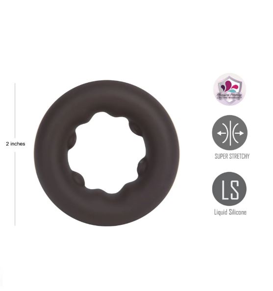 This super stretchy ring features a nubbed interior design that securely supports the penis, enhancing your performance and prolonging your enjoyment. Will stretch 3-4 times their size, and return to their original shape, repeatedly.Features Liquid Silicone ConstructionStretchy and DurableInside Diameter 1-1/8Outside Diameter 2Thickness of 3/4SubmersiblePleasure Promise WarrantyHow To Apply Your RingsApply lube to your penis and the inside of the ring.Put the ring over the head of your penis, then slide it down toward the end of the shaft.
