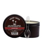 Hemp Seed 3-In-1 Candle Kashmir Musk 6 ounces from Earthly Body. Non-graphic round tin containers hand poured, fragrant natural soy oil massage candle burns longer and cleaner. Candle melts into a warming, silky massage oil. Penetrates and moisturizes skin. Eight natural oils including hemp seed, Vitamin E, Jojoba, Avocado, and Apricot leave skin soft and smooth. Use right out of the shower or bath. Earthly Body’s most popular skincare products are the 3-in-1 Massage Candles. They are unique, fun gifts and skin care rolled into one. These scented soy candles are all natural great smelling, no paraffin, no petroleum and clean burning. What makes them different and fun is that they can be used for giving warm massages or can be used every day after a bath or shower as a body and skin moisturizer. Their massage candles are formulated with quality cosmetic grade ingredients. 100% vegan, non-toxic materials. All natural skin care products, Hemp Seed Oil, Lotions, Hemp skin care products, Soy scented candles. The industrial seed Hemp that is used in cosmetics today is not marijuana, although they are from the same species, Cannabis Sativa. The seeds are sterilized, removing any traces of THC – the mind altering compound found in the drug. Industrial hemp can be grown with relatively little fertilizer and without the pesticides that have been known to pollute ground water and river systems. Manufacturer’s Declaration: the oil in the hemp based products has been tested in accordance with Health Canada and USDA guide lines and contains 0.00% THC, tetrahydrocannabinol. Never leave a burning candle unattended. Always store out of reach of small children. Calming ambiance and enjoy a relaxing massage with a single product. Earthly Body unique candles melt into a warm massage oil that gently absorbs into the skin, leaving it well moisturized and feeling silky soft. Pour or spoon into your hand and apply as massage oil or moisturizing oil. The candle contains all natural ingredients such as Soybean Oil, Hemp Seed Oil, Coconut Oil, Almond Oil, and Vitamin E. Fragrance derived from natural sources. It comes equipped with a handy spoon for dispensing. The sweetest smells can lead to the sweetest situations! Kashmir Musk 3 in 1 Massage Candle has notes of Brandy, Jasmine and Cedar Wood Musk. Categories: Erotic Body Lotions, Health and Beauty Aids, Candles, Oils. Restricted, Amazon Restricted. 2023.