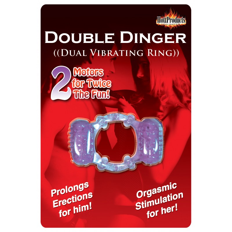 The Humm Double Dinger Dual Vibrating Ring Purple. 2 motors for twice the fun. Prolongs erections for him. Orgasmic stimulation for her. Portable vibrating cock ring that can fit any size penis because of its super-stretch material. Twice the hummer! Humm Dinger Double Dinger is made of stretchy jelly. The erection enhancer fits around the base of the penis shaft. Two removable 1.125 inches by .5 inch bullets stimulate the testicles and clitoris. Each bullet has easy on-off control and last 40 plus minutes. Warning: May cause screams of intense pleasure! Humm Dinger is the brand name known the world over for its powerful motor and super sensuous stretch silicone, which is sure to please and tease both partners during intimate play time! Don’t be fooled by the rest. Stick with the Best! It offers 40 minutes of continuous vibration and an easy on/off switch. Batteries are included for immediate use. Cock rings when worn around the base of the penis and testicles, many users find that cock rings increase sexual pleasure. Prolong rings, erection enhancement, climax control rings, cock rings. As shown only purple in colors. Humm Dinger Double Dinger Purple from Hott Products Unlimited. Categories: Love Rings, Cock Rings, Couple’s Cock Rings, Love Rings. 2023.