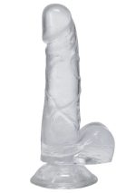 The moderate width and slim tapered tip of this 6-Inch Dick with Balls From Doc Johnson, are designed for easy entry and optimal pleasure. This dong features a lifelike phallic shape complete with realistic veins, firm balls, and suction-cup base for hands-free play. Phthalate-Free and Body-Safe.Crystal Clear, Semi-Translucent MaterialRealistic Textured VeinsSuction Cup Base for Hands-Free PlayFirm Yet Flexible