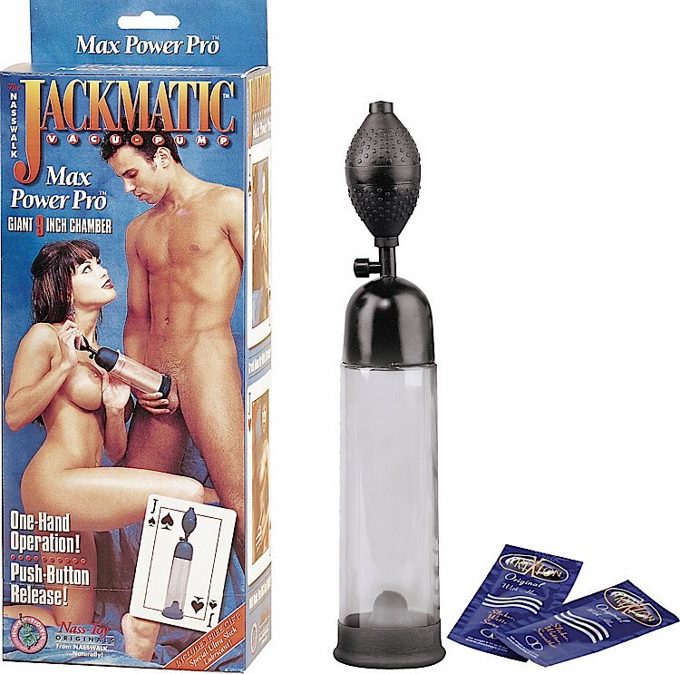 Jackmatic Pump Large Ultra Pro 9 inches from Nasstoys of NY. Maximizes length and girth! One handed operation squeeze bulb with powerful suction with push button release. Made using phthalate free, non-toxic materials ABS plastic cylinder, Thermoplastic Rubber TPR base, cap, latex bulb. ABS Plastic is hard plastic, non-porous, durable and easy to clean and maintain. All types of lubricants may be used with hard plastics. Includes free gift a sample Frixion lube! Frixion Lubricant performance enhancing contains Aloe Vera, Guarana, Maca, Yohimbe, Avena Sativa, Ginseng and Arginine extracts. Always clean before and after use. Jackmatic Pump Large from Nasstoys of New York. Categories: Penis Pumps, Male Penis Pumps, Masturbator Pumps, Health and Beauty Aids, Sex Toys for Men. Restricted, Amazon Restricted. 2023.