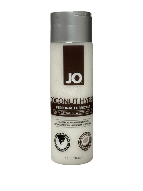 JO Coconut Hybrid lubricant 8Oz is our unique blend of premium coconut oil and water-based ingredients. It offers a rich glide that melts against the skin for the perfect slide during solo, partnered, and toy play. Its soft, creamy formula absorbs naturally for a nourishing and delicate finish thats never greasy or oily.