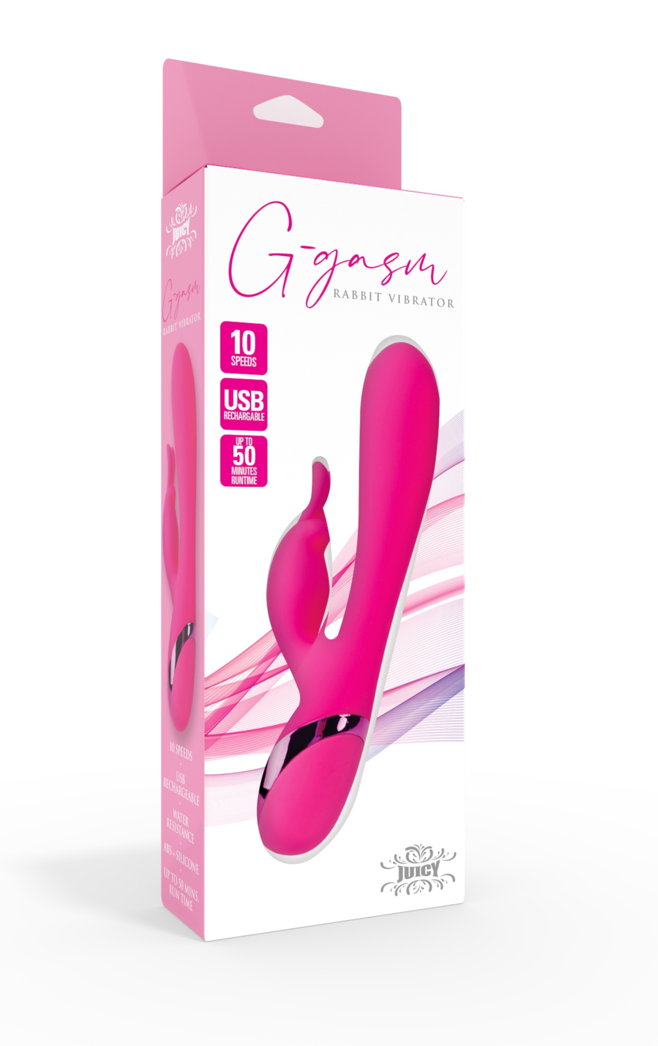 Juicy G-Gasm Rabbit Vibrator from Cousins Group. Barcode: 669423998822. Everything you love about Rabbit Vibes, now sleeker, softer and easier to control! Deliver simultaneous stimulation to your clit and G-Spot. Dual motors in this 8 inches vibe’s angled G-Spot tip and flexing clit tickler deliver 7 speeds and functions of super charged vibration. Silicone Shaft is 1.25 inches wide, insertable up to 6 inches. The Silicone G-Gasm Rabbit is waterproof and submersible for bath and shower fun. Developed from Customer requests! Features Silicone G-Gasm Rabbit Vibrator: Rabbit Style Vibrator: stimulates both clitoris and G-Spot. Dual motors in G-Spot tip and clit tickler. 7 modes of vibration, escalation and duration. Flexible body. Size 8 inches long, 6 inches insertable, 1.25 inches wide. Instant on/off switch lights up during use. Separate speed/function button. Made from Premium Silicone. Waterproof, submersible vibrations. Uses 2 AAA batteries, not included. Sold separately. Use only with water based lube or gel. Molded from deliciously smooth and sensual premium grade silicone, your Silicone G-Gasm Rabbit’s flexible body takes on your favorite water based lube or gel for a wonderful, slippery feel. Silicone quickly warms to your body temperature, letting you relax and enjoy the ride: one orgasm at a time! Easy use. Easy care. The buttons could not be any simpler. An instant on/off button that lights up to let you know it is working. A second button for selecting vibration and speed choices. Be sure to secure the battery cap. A tight click assures the best results. Keep your Silicone G-Gasm Rabbit looking and feeling like new with warm water and mild soap, or use one of our sex toy cleaners. The Silicone G-Gasm Rabbit has taken what many women love about rabbit vibes and made it even better for care free orgasm. Solo, or with a partner. Get your own G-Gasm Rabbit today. Note: to replace batteries, press back on the battery compartments release tab. This releases the battery cover. Once batteries are replaced, press the battery cover back firmly against the bottom of the toy. Make sure to click the release tab forward toward the vibes control panel. If vibe fails to operate, check that batteries are charged and the tab is clicked all the way forward. Categories: Vibrators, Rabbit Style Vibrators, Sex Toys for Women, G-Spot Rabbit Style Vibrators. 2024.