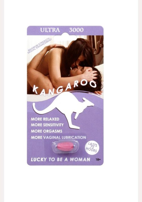 Kangaroo Violet For Her 1 Count Package maximum strength sexual enhancement. Ultra 3000. More relaxed. More sensitivity. More orgasm. More vaginal lubrication. Last up to 72 hours. 18 and older ladies. Lucky to be a woman. These statements have not been evaluated by the FDA. These product are not intended to diagnose, treat, cure or prevent any disease. Unleash the woman in you. From the makers of Kangaroo for Men and the original Kangaroo for Women, comes their next maximum strength Intense Venus 3000 formula designed to enhance a woman’s sexual pleasure and performance. Kangaroo for Women Intense Venus 3000 (formerly known as Violet Ultra 3000) is designed to assist in relaxation, sensitivity, and increased libido. Kangaroo Intense Venus 3000 comes in a purple tablet form. If you’re new to supplements, we recommend the Kangaroo for Her Sex Supplement Sampler Bundle so that you may try a selection of Kangaroo’s supplements for women. Kangaroo Intense Venus 3000 for Women Ingredients serving size: 1 tablet. Proprietary Blend: 3000. Ingredients: Ashwagandha Root, Tribulus Terrestris, Horny Goat Weed Extract, Maca Root, Panax Ginseng, BioPerine Complex, Soy Isoflavone Complex, L-Tyrosin, L-Histidine, Choline, Dimethylglycine, NADH. Manufacturer’s directions: take up to 1 tablet at least 30 minutes before engaging in sexual activity. Do not take more than 1 pill within 2 days. Manufacturer’s precautions: do not take this product if you are pregnant. Do not take this product if you are breastfeeding. Do not take this product if you are taking any kind of medication or drug especially if it contains any nitrates within the past 12 hours. Do not use this product if you have any type of medical condition especially heart condition or a high blood pressure. Immediately discontinue using this product if you are experiencing shortness of breath or heart irregularity. Must be at least 18 years of age to use this product. Keep out of reach of children. Store in a cool dry place. Supplements may not ship internationally outside of the USA. Categories: Meds, Supplements, Sex Pills, Health and Beauty, Sex Toys for Women. 2024.