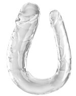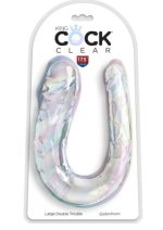 The Choice is Clear!The King Cock Clear Double Trouble Dildo combines a translucent double dildo with a realistic cock design: flexible shaft, detailed veins, and defined head. Crafted from flexible TPE, the King Cock Clear Double Trouble Dildo is perfect for solo and partner play and addresses the need for satisfying fulfillment.Delve into fantasies involving multiple partners without the need for additional participantsor any partner at all! Whether you prefer switching between the thick and thinner ends or enjoy indulging in double penetration fantasies, the King Cock Clear Double Trouble Dildo is the perfect choice for you. Created to heighten your pleasure experience, this specially crafted formula is virtually odorless, non-sticky, and easy to clean. Product Length17.5 in. (44 cm)Additional DimensionsInsertable Diameter (large end): 2.1 in. (5.4 cm)Insertable Diameter (small end): 1.2 in. (3 cm)