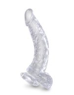 King Cock Clear 7.5 inches Cock Realistic Dildo with Balls from Pipedream Products. Clearly the best! Created to heighten your pleasure experience, this specially crafted formula is virtually odorless, non-sticky, and easy to clean. King Cock Clear combines a translucent dildo with a realistic cock design. The luminous clarity and life like form will fulfill all your fantasies! With its flexible shaft, detailed veins, and defined head, King Cock Clear will engage your senses visually and physically. The powerful suction cup base sticks to nearly any flat surface and makes every dildo harness compatible. See the innovation. An incredibly pure, translucent material. Feel the realism. A life like design with every vein, shaft and head carefully hand crafted. Enjoy the action. A powerful suction cup base sticks to nearly any flat surface. Experience the advantages. Effectively harness compatible with the sturdy suction cup detail. Bulk weight 8.25 ounces. Package depth 3.5 inches, width 5.5 inches, height 14.5 inches. Packaged weight 12.25 ounces. Features and functions harness compatible, unisex. Material Thermoplastic Elastomer TPE. 90 days warranty. Categories: Dildos, Dongs, Realistic Small, Medium Dildos, Dildos and Dongs Realistic. 2022.