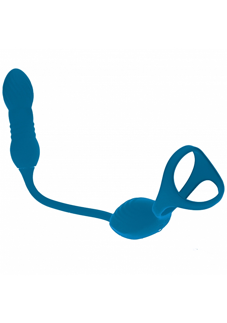LEVELZ VIBRATING & THRUSTING TRI O COCK RING W/ PROSTATE STIMULTOR TEAL