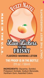 Love Lickers Fuzzy Navel Peach Flavored Warming Lotion Massage Oil 2 ounces. Fuzzy Navel Love Lickers Warming Massage Oil is recognized as the choice for intimate massages in bedrooms everywhere! Love Lickers edible warming oils for the frisky heat up your nights! 2 fluid ounces sampler bottle. Travel size single serving latex condom compatible. Love Lickers is available in the following 6 delicious flavor adult drink flavors: Fuzzy Navel, Malibu Screw, Panty Dropper, Screaming Orgasm, Sex on the Beach, Virgin Strawberry. Each sold separately. Secret Santa Shops Here, Christmas, Holiday Gifts, Stocking Stuffers. Little Genie Productions. Only the best ingredients. Ingredients: Glycerin, Sorbitol, Potassium Sorbate, Sodium Benzoate, Zantham Gum, Assorted Colors. Categories: Erotic Body Lotions, Sex Toys for Couples, Massage Lotions, Creams, Oils. 2022.