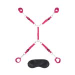 Lux Fetish 7 Pieces Bed Spreader Hot Pink from Electric Eel. You no longer need a dungeon with this convenient 7 piece bondage set that easily allows you to turn your bed into the ultimate setting for intense BDSM play. The Lux Fetish 7 Piece Bed Spreader in a fun hot pink color is a must have for every kind of restraint play enthusiast, whether you are a hard core bondage fan or a first time kink explorer. The set includes four adjustable cuffs made of neoprene, tethers and four straps that connect to a center band that can be used on beds of all sizes. Each strap features a cuff attached to an O-ring with a swivel clip to keep a submissive partner comfortably and securely in a spread open position and ready for kinky fun. The set up for this bed spread kit is easy and when playtime is over, you can discreetly tuck the cuffs away under the mattress until your next kinky session. Intensify the sensation of every touch by place the included blindfolded over the eyes of the restrained partner. Features: convenient under the mattress design allows for full restraint play. Includes wrist and ankle cuffs. Turns any bed into a bondage play setting. Discreet design allows for restraints to easily store when not in use. Travel friendly and easy to set up. Beginners friendly cuffs also are sturdy enough for experienced players.