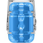 Main Squeeze Pop-Off Optix Crystal Blue stroker. See yourself in a whole new way. This unique double ended addition to the Optix category of Main Squeeze variable pressure strokers features lifelike openings in the collections unique transparent design, scaled down to fit in the palm of your hand. Pop-Offs hard plastic case and tight, textured Ultraskyn insert offer the same visually stimulating experience and squeezable, tightness controlling grip as the original in a discreet compact size. Details: lightweight masturbator with hard outer case. Visually stimulating transparent material. Lifelike ass and pussy openings. Great to use during couples play and oral. Mini squeeze plate allows user to control pressure. Fully disassembles for cleaning. Includes complete care and usage instructions.