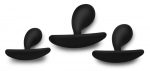 Master Series Dark Droplets 3 Piece Curved Anal Trainer Set from XR Brands. Elevate your anal pleasure with these 3 velvety drops, designed for easy anal pleasure for all skill levels! These tempting droplets are plush, firm, and shaped for peak satisfaction, providing your back door with a satisfying round mass for your booty to squeeze on! Play and train with three graduated sizes, upgrade from small to medium to large at your own pace! Beginners and experts alike will appreciate the ergonomic base and slim necks found on each butt plug, keeping things comfortable for extended play sessions. Expand your back door and get your hole ready for bigger and better things! Each Dark Droplet is curved for additional pleasure and stimulation, perfect for targeting sensitive spots like the male prostate! Massage and please, solo or with your lover with precision. Made with premium, phthalate free Silicone for a body safe anal experience. The silky texture is addicting to squeeze and feels even better with your favorite Water Based Lubricant! Small Butt Plug measurements overall length 2.2 inches, insertion length 1.7 inches, widest point 0.8 inch. Medium Butt Plug measurements overall length 2.7 inches, insertion length 2.2 inches, widest point 1 inch. Large Butt Plug measurements overall length 2.9 inches, insertion length 2.5 inches, widest point 1.2 inches. Materials: Silicone. Color: Black. Categories: Anal Toys, Sex Toys for Couples, Sensual Kits, Anal Trainer Kits. 2023.