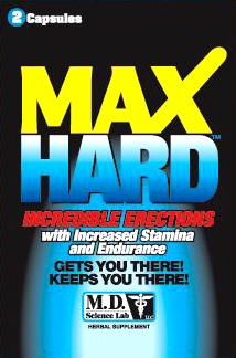 Max Hard 1 Pill Herbal Supplement is scientifically formulated for: maximum male enhancement, Maximum endurance, Incredible erections. Ultimate staying power, Increased excitement. Gets you Hard. Keeps you Hard like you have never seen before. The advanced natural formulation of Max Hard is quite possibly the finest and most comprehensive available in the world. works fast to give you incredible erections and ultimate staying power with increased excitement and endurance. Supplement Facts: Serving Size 1 capsule. Servings Per Container: 30. Amount Per Serving: Proprietary Blend: 1640 mg, Yohimbe, Avena Sativa, Tribulus Terrestris, Siberian Ginseng, L-Tyrosine, Taurine, Xanthoparmelia Scrabosam, Cnidium Monnier, L-Citrulline, L’Arginine, Eurycoma, Longfolia Tongkat Ali Extract, Maca, Epimedium Horny Goat Weed. Warning: please use only as directed. If you are using any Prescription Drug, or have a medical condition, consult your physician before using this product. These statements have not been evaluated by the Food and Drug Administration FDA. This product is not intended to diagnose, treat, cure, or prevent any disease. Swiss Navy Max Hard gets you hard and keeps you hard like you have never seen before. Max Hard is the most comprehensive product of its kind! Max Hard is an advanced formulation that supports incredible erections, staying power and increased excitement. Tested and proven formulation with premium natural ingredients. Twice the capsule count of its competitors for the same price. Power packed formula with no side effects. Get more bang for your buck! M.D. Science Lab. The empowering source of fulfillment and sexual health. Take advantage of advanced, natural M.D. Science Lab. You now have the ability to take confident new steps towards enhancing your sex life. Categories: Meds, Supplements, Sex Pills, Sex Toys for Couples, Men, Women, Health and Beauty Aids. Adults only. Keep out of reach of children. 2023.