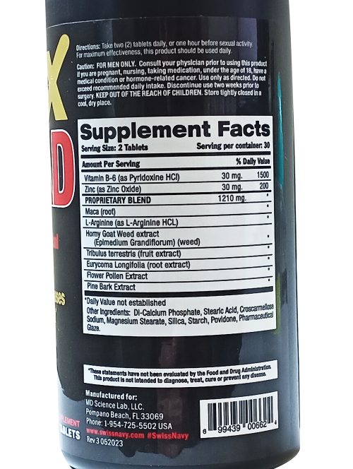 Max Load 60 Piece Supplement Bottle Bulk from M.D. Science Labs. Naturally increases ejaculation. Intensifies climax. Cum Harder, Cum Longer, Cum More!! Just like the guys in the movies. Max Load 60 count bottle from M.D. Science Labs. A stimulant free formula designed for a dual purpose – to increase sex drive and build lean body mass. Perfect for men who want better sex without taking stimulants, as well as build muscle and increase energy for more vigorous and effective workouts. The ultimate blend to build a leaner, ripped body! A supreme blend of 14 components to boost, stabilize, and free up testosterone. Powered packed with ingredients such as Tribulus Terrestris, Xanthoparmelia, Cnidium Monnier, Damiana and Macuna Pruriens. Stimulant free! An advanced potency formula designed fora dual purpose to build lean muscle mass and increase sex drive. Supplement Facts for Max Testosterone from back label. Serving Size: 2 Tablets. Servings Per Container: 30. Magnesium as Magnesium Oxide 20mg 6%, Zinc as Zinc Oxide 20mg 134%, Selenium as Selenomethione 50mcg 62%. Percentage daily recommended doses. Proprietary Blend Max Testostreone: 1,760mg Tribulus Terrestris, Avena Sativa, L’Arginine HCl, Macuna Puriens, Ginkgo Biloba, Eurycoma Longfolia Tongkat Ali Extract, Epimedium, Saw Palmetto, Damina leaf, Cnidium, Xanthropermelia. Other Ingredients: DO Calcium Phosphate, Stearica Acid, Magnesium Stearate, Croscarmellose Sodium, Silica, Pharmaceutical Glaze and Talc. Daily Value Not Established. Max Load from M.D. Science Labs. M.D. Science Lab, LLC Pompano Beach, Florida 33069. Warning: use only as directed. If you are using any prescription drug, or have a medical condition, consult your physician before using this product. Store closed tightly in a cool dry place. Keep out of reach of children. Note: Manufacturers continually change product specifications. These statements have not been evaluated by the Food and Drug Administration FDA. This product is not intended to diagnose, treat, cure, or prevent any disease. Categories: Meds and Supplements, Sex Pills, Sex Toys for Men, Health and Beauty Aids. Restricted, Amazon Restricted. 2023.
