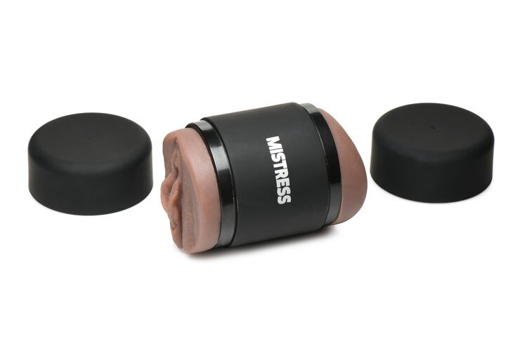 Mistress Double Shot MiniI Masturbator Pussy and Ass Dark Skin Tone from Curve Novelties. Brand: Mistress. SKU: CN-07-0589-11. UPC: 653078943207. Mini Double Ended Masturbator. Compact ergonomic design. Two distinctly different entries. Dual storage caps for clean storage.Ultra patterned tunnel. Extremely travel friendly. Made with the signature life like Bioskin Thermoplastic Elastomers TPE. Phthalate free and Latex free. Color: Dark Skin Tone Brown. Soft premium TPE. Care and maintenance: clean with toy cleaner. Rinse with warm water. Pat dry before storing. Please use only with water based personal lubricants. Product details: DimensionsCase length 4.4 inches, width 2.7 inches, insertion length 4 inches. Bulk weight 9.4 ounces. Material Thermoplastic Elastomers TPE. Product type Masturbator. Color Dark Skin Tone Brown. Categories: Male Masturbators, Sex Toys for Men, Solo Masturbators, Pussy, Ass Stroker, Realistic Vaginas and Ass Masturbator. 2023.