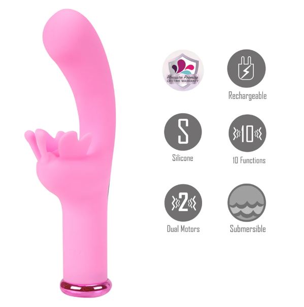This stylish device features multiple vibration settings and is equipped with dual motors that provide 5-speeds and 5-variable vibration patterns, ensuring intense stimulation for both the G-Spot and Clitoris.Crafted from body-safe Silicone, MYLA guarantees peace of mind. Its easy-to-clean design and rechargeable feature make it an ideal choice for solo exploration or intimate moments with a partner. MYLA is fully submersible, allowing for exciting aquatic adventures.With an insertable length of 3 inches and a head diameter of 1-1/8 inches, it caters to both gentle teasing and powerful pulsations, ensuring a tailored experience.Features: 10-Function (5-Speed, 5-Variable), Body Safe Silicone, Submersible for Wet Play, Magnetic Charge, Charging Cable Included Operating Instructions:Press and hold the Push-Button for 3 seconds to power your item on. The light will turn solid.Press and release the Push-Button to cycle through the 10-functions.Press and hold the Push-Button for 3 seconds to turn your item off.