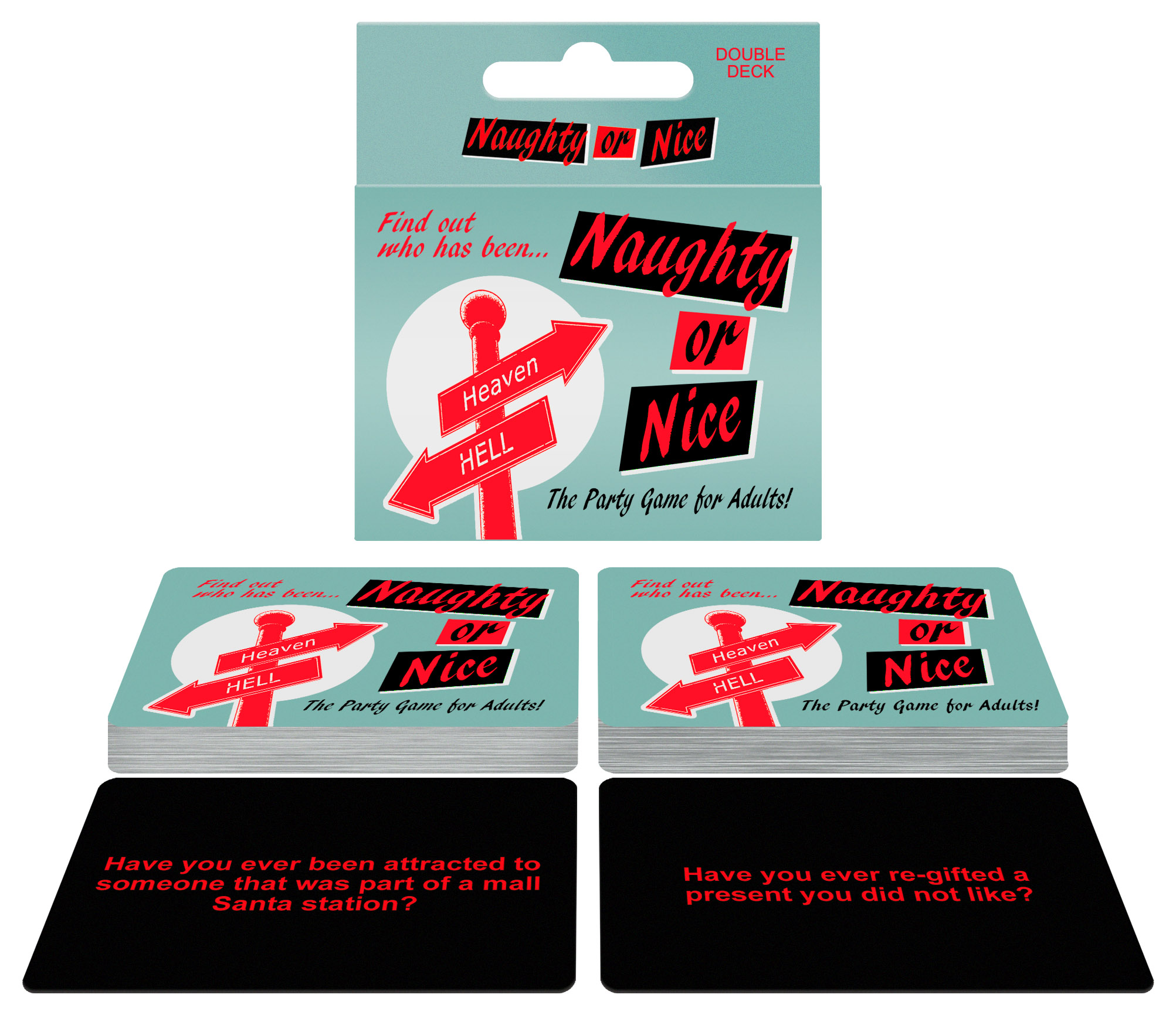 Kheper Games – Naughty Or Nice Board Game with double deck playing cards. Players take turns drawing and reading cards. After each question is read, anybody who answers yes is Naughty, and anyone who answers no is Nice. Naughty Players take a drink! Find out who has been naughty or nice. Heaven and Hell. The party game for adults. Sample cards: have you ever been attracted to someone that was part of a mall Santa station? Have you ever re-gifted a present that you did not like? Adult Game Includes: 107 cards and 1 rule card. Language English. Target Audience: Adults. Number of players 2 or more. Kheper Games Item Code: BG.C105. Naughty Or Nice Board Game from Kheper Games. Categories: Party Games, Gifts, Supplies, X-Rated Adult Games, Xmas items, Adult Party Games, Adults only please 18+.. 2022.