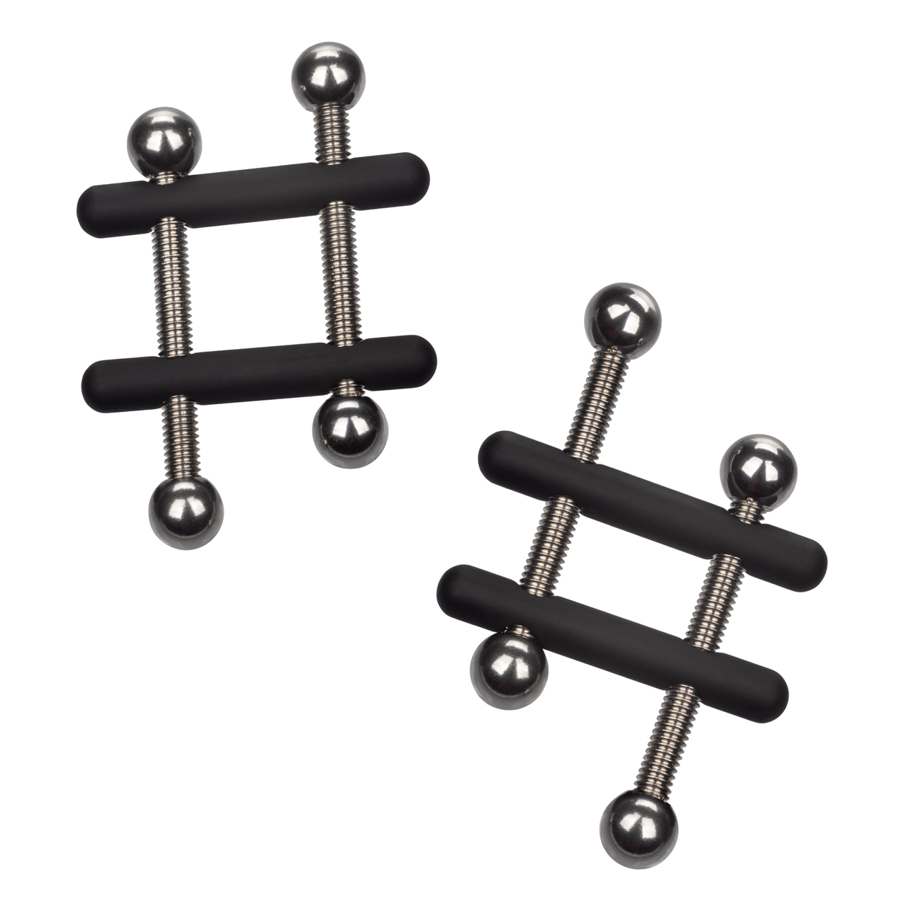 Nipple Grips Power Grip Crossbar Vices from California Exotic Novelties. Push sensation to the next level and enjoy teasing nipple play with the Nipple Grips Power Grip Crossbar Nipple Vices. Explore elevated sensation with the 2 fully adjustable multi use clamps with a unique crossbar design. Clamp the naughty clasps to the nipple or anywhere on the body and enjoy every rush of pain and pleasure while the power grip cote holds tight. Nipple clamps are made of heavy duty metal that is non-tarnishing and nickel free, making them body safe and long lasting. To keep your products clean, simply wash with warm soap and water or our Calexotics toy cleaner and let dry. Specifications: SKU SE-2550-10-2. Color Black. 1 year warranty. Material type Nickel free Alloy, Rubber. Features: phthalate free. Bulk weight 1.6 ounces. Package 3 ounces. Package 0.6 inch by 5 inches by 8.4 inches by 1.5 inches. Non-piercing Nipple Clamps. Fetish Foreplay Accessories, Nipple Accessories, Non-Piercing, Body Jewelry. Calexotics – Nipple Play. Couples Play, Kink Play. To enhance your experience Cal Exotics has a cherry flavored. SE2249051. Categories: Bondage, Fetish, Kink, Sex Toys for Couples, Men, Women, Nipple Play, Bondage Kits and Kinky Sets. 2023.