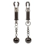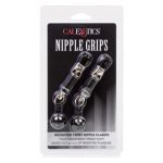 Nipple Grips Weighted Twist Nipple Clamps from California Exotic Novelties. Blur the borders between pleasure and pain even further with the game changing Nipple Grips Weighted Twist Nipple Clamps. Explore elevated sensation with 2 adjustable nipple clamps, unique twisting design and swinging weight. Clamp the naughty clasps to your body and enjoy every rush of stimulation. The teasing clamp has adjustable tension to stimulate anywhere on your body for playful teasing. As the tension tightens, the tingles intensify with every turn of the unique twisting clamp for the ultimate in nipple stimulation adult toys. With the teasing clamp stimulation and swinging weight, you can look forward to amplifying nipple sensitivity and intensify overall arousal. Non-piercing nipple clamps. Nickel free materials. Weighted balls weigh 1.5 ounces each ball. Specifications: SKU SE-2551-20-2. Color Black. Materials Nickel free Alloy, Stainless Steel, PVC Plastic, Iron. Features Phthalate free. 1 Year Warranty. Measurements: 1.25 inches Clamp. 5.5 inches overall. Bulk weight 5.2 ounces. Package 6.6 ounces. Package 1.05 inches by 4.5 inches by 8.5 inches. Categories: Bondage, Fetish, Kink, Sex Toys for Couples, Nipple Play, Bondage Kits, Kinky Sets. 2023.